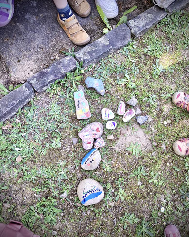 ihre bemalten Steine ab – als Geschenk. Als Zeichen der Wertschätzung. Für ihre eigenen Geschwister. Für all die anderen verstorbenen Kinder.